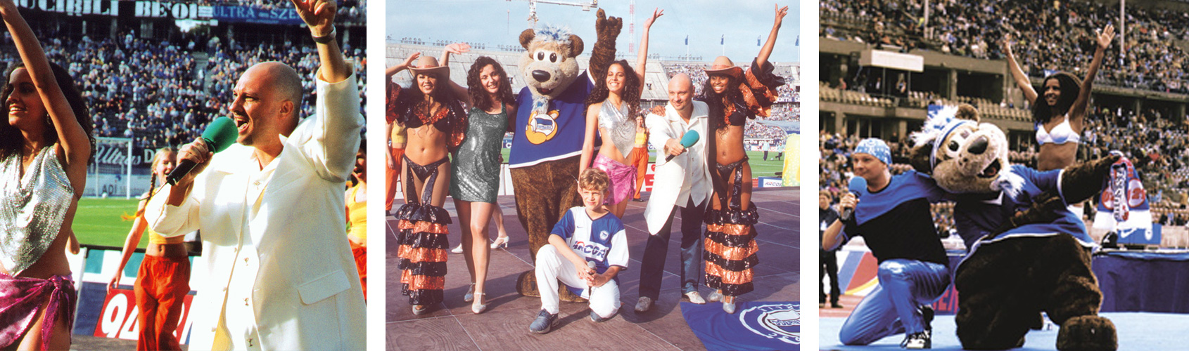 Bei einem erneuten Auftritt im Berliner Olympiastadion im Jahr 2001 begeistert Carinho und Jerico die Fans von Hertha BSC.