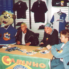 Autogrammstunde zusammen mit dem damaligen Hertha-Star Marcelinho in der Geschäftsstelle von Hertha BSC.
